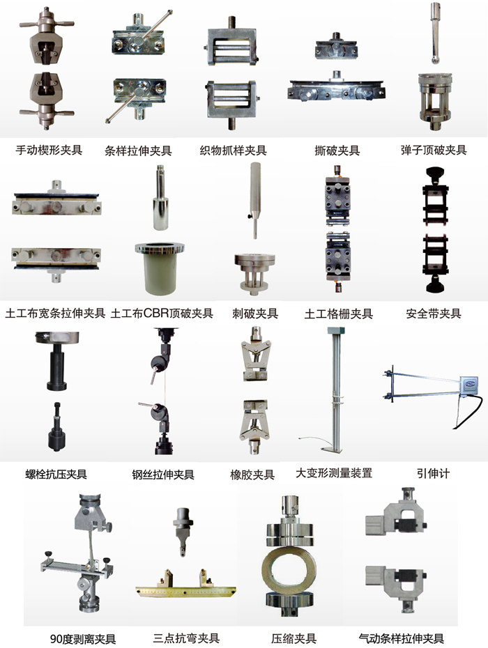 7.土工格柵夾具、安全帶夾具、螺栓抗壓夾具、鋼絲拉伸夾具、橡膠夾具(這幾類基本都是聽名字就知道是用來測試什么產(chǎn)品)