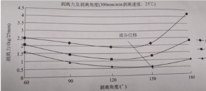 1、大部分膠帶剝離角度在120°-150°之間時(shí) ,所測(cè)的剝離力zui小。