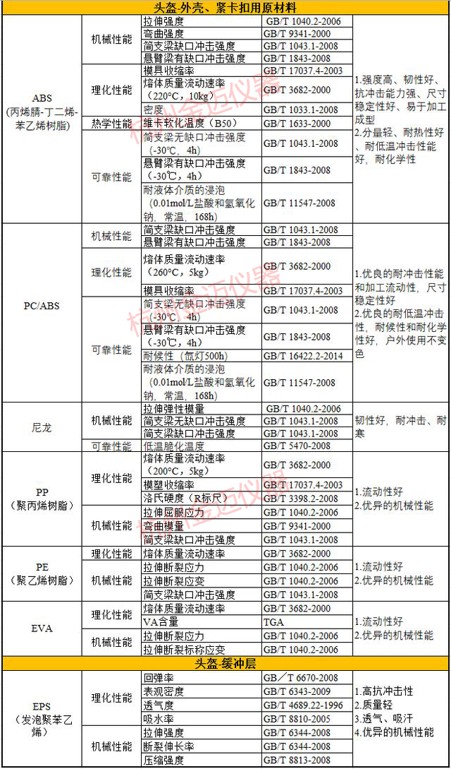 杭州金邁儀器小編告訴你:頭盔所有檢測標(biāo)準(zhǔn)如圖所示: