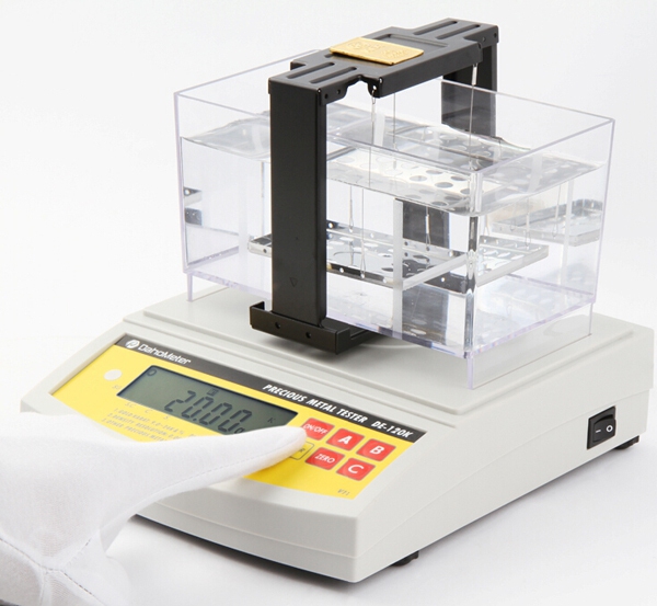 1、密度測(cè)試法(黃金純度含量與k值測(cè)試儀):用此方法測(cè)定金首飾的密度值、K值,是鑒定金首飾迅速而又準(zhǔn)確的方法,為當(dāng)鋪行業(yè)較為廣泛采用的一種方法,對(duì)金首飾無(wú)損傷,從而能夠更好保護(hù)典當(dāng)物品。但針對(duì)完全空心的會(huì)顯示LO,及空的如果空氣不干凈,也會(huì)顯示LO或者低于實(shí)際K值的顯示。