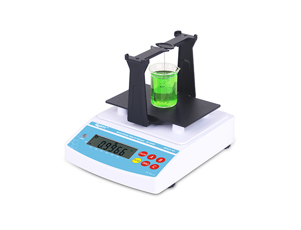 ①將盛有樣品的測量杯放于測量放置板上,扣除掛鉤的重量。