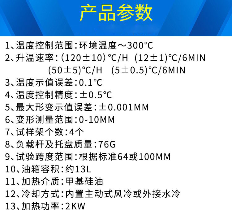 ? 可做各種標(biāo)準(zhǔn)樣條的熱變形試驗(yàn)。